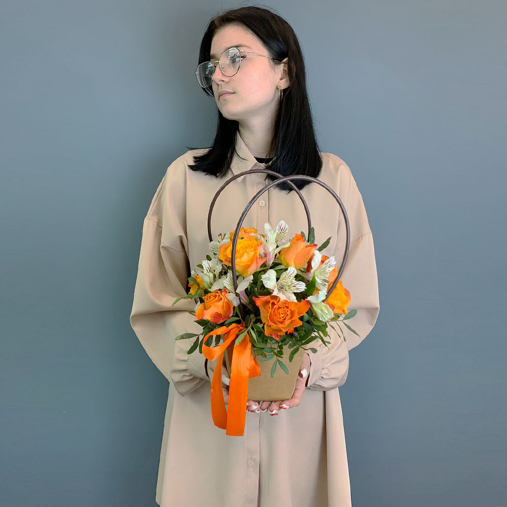 Сумочка с оранжевыми розами Кения и альстромерией арт. 66996-Р