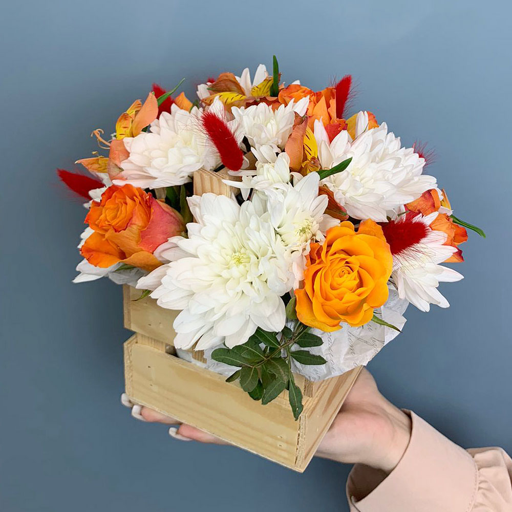 Чтобы букет радовал дольше, достаточно слегка увлажнять губку, сохраняя цветы свежими. Хризантемы и альстромерии славятся стойкостью, поэтому композиция будет сохранять красоту несколько дней. Закажите цветы в ящике с быстрой доставкой и порадуйте тех, кто для вас дорог.