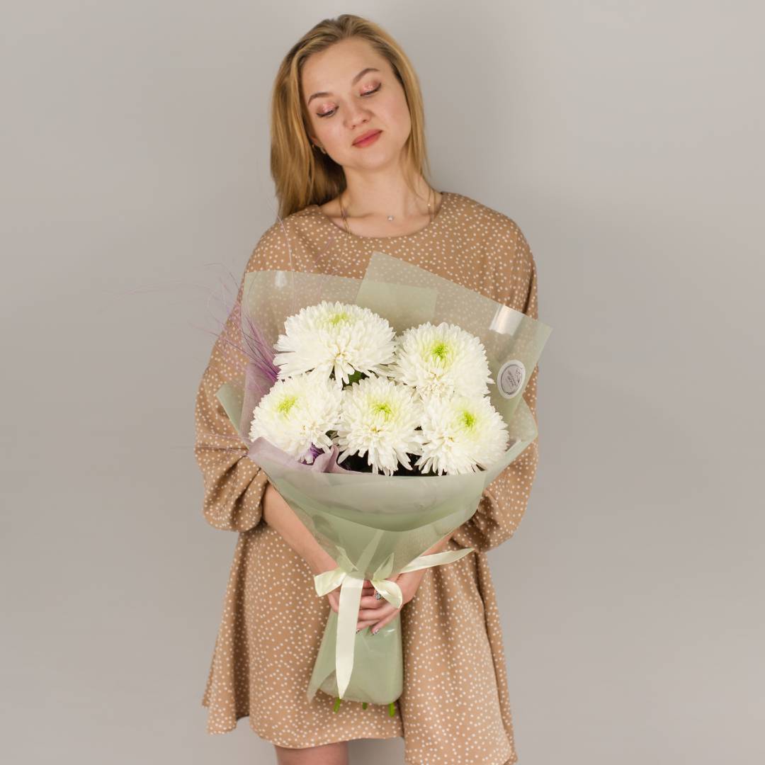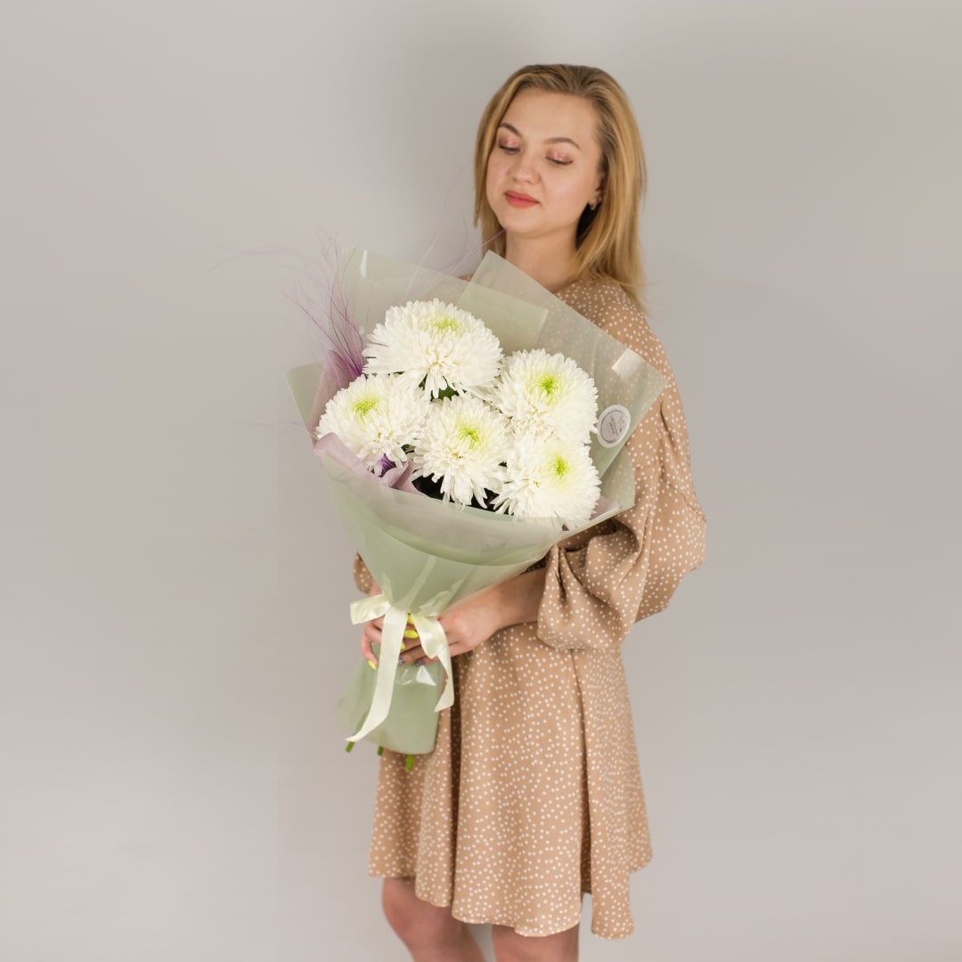Букет из одноголовых белых хризантем с сухоцветами 50443